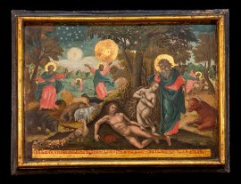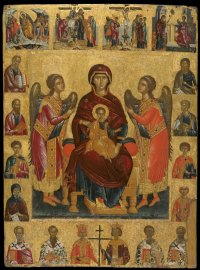 The Dormition of the Virgin. Victor. Second half of 17th c. Victor (references 1651-1697) was a priest and a prolific painter from Crete. Though his compositions lacked originality, he became very popular in his time. H. 0,42 m., W. 0,355 m. (ΓΕ 3004)