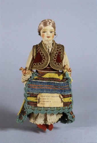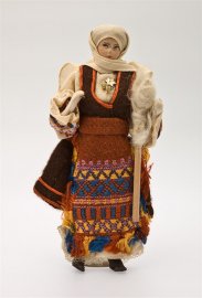 Regional costume doll with women's costume from Attica, by Lili Theodoridou. Athens, 1950. height 20 cm. (ΤΠΠ_64)